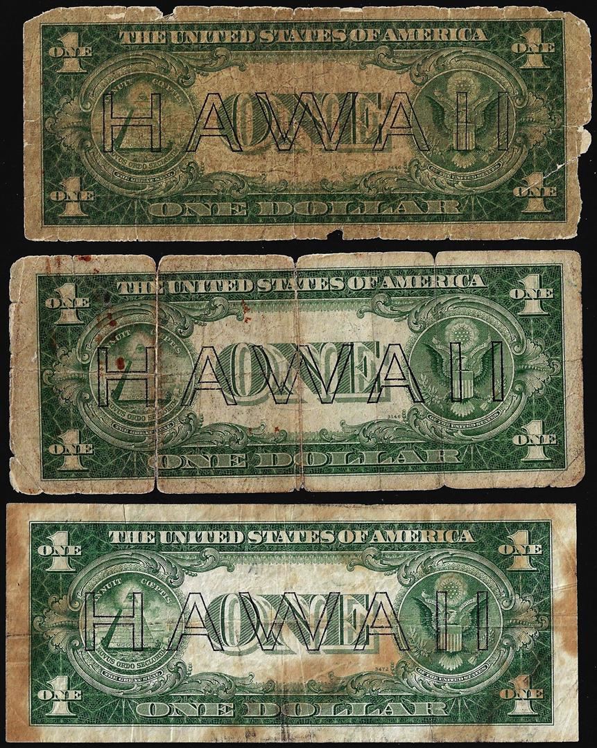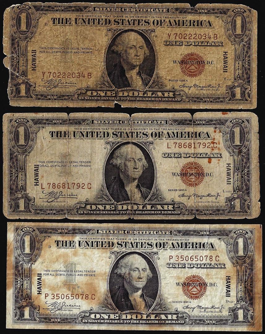 Lot of (3) 1935A $1 Hawaii WWII Emergency Issue Silver Certificate Notes