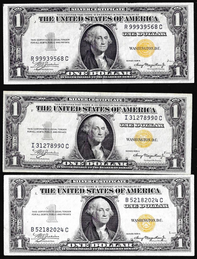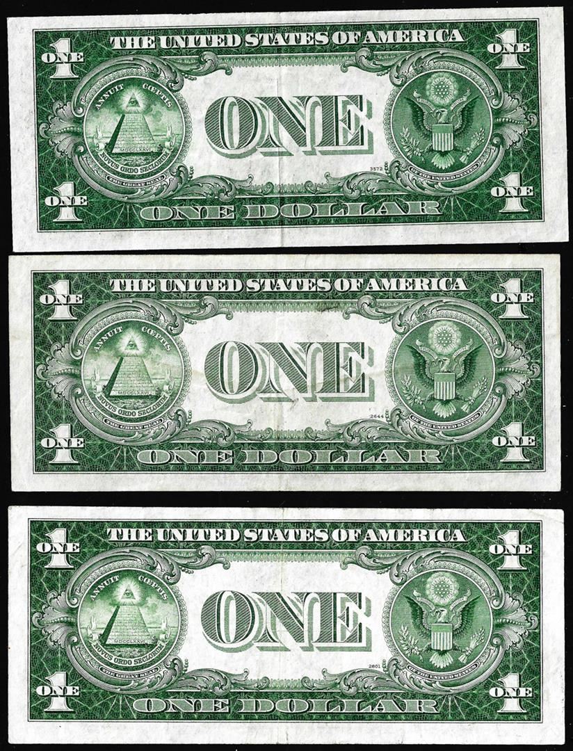 One Lot of (3) 1935A $1 North Africa WWII Emergency Issue Silver Certificate Notes.