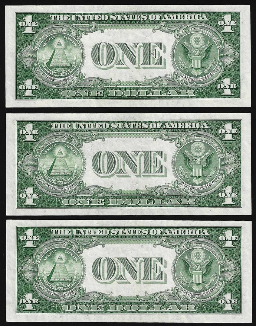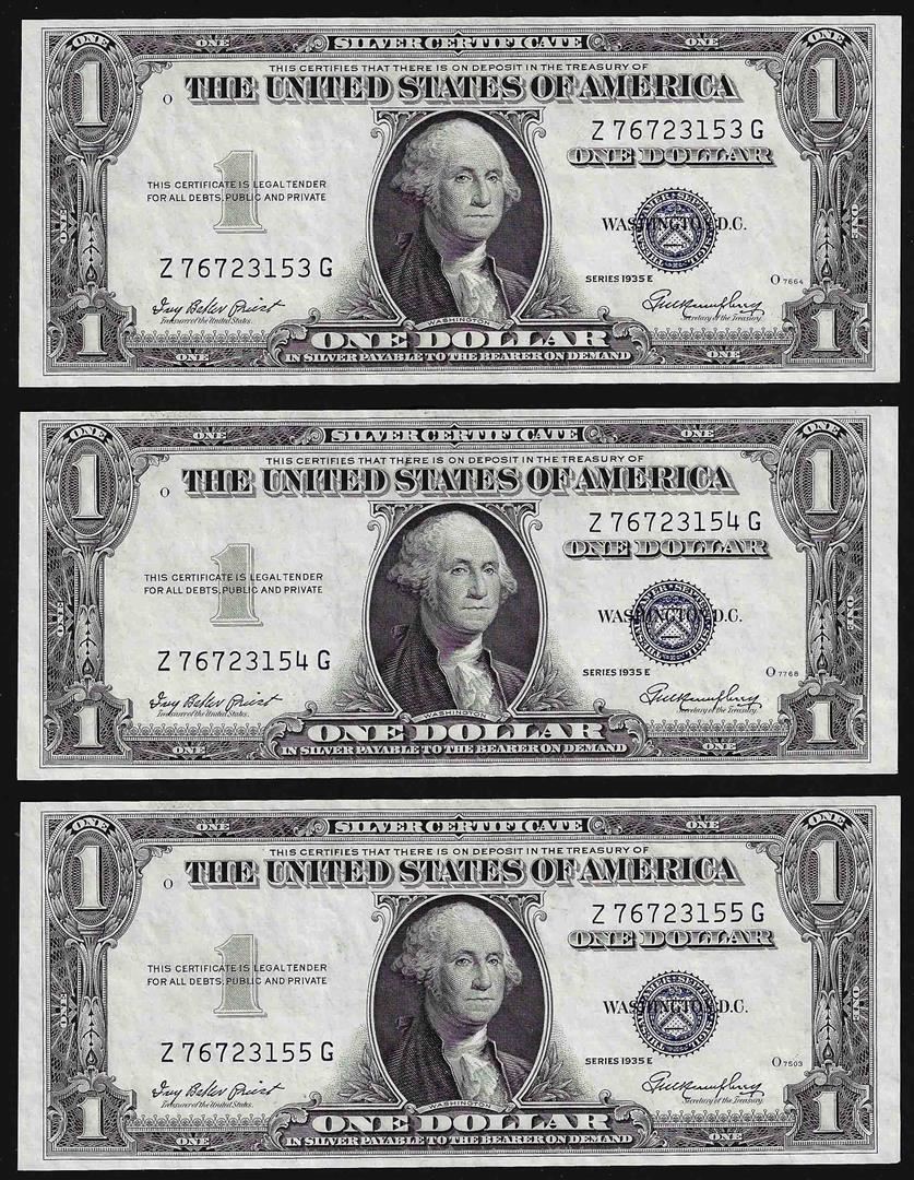 One Lot of (3) 1935E Consecutive $1 Silver Certificate Notes Uncirculated.