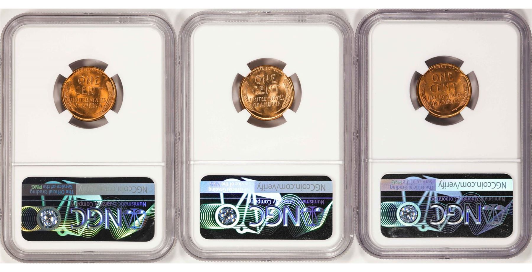 One Lot of (3) 1939 Lincoln Wheat Cent Coins NGC MS67RD. NGC Certified.