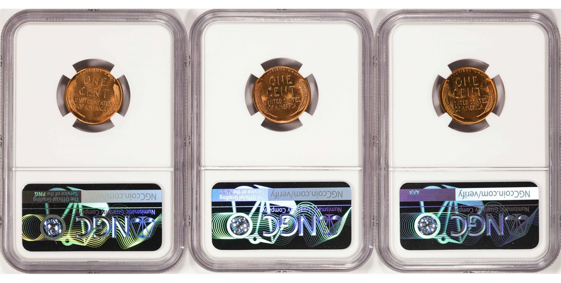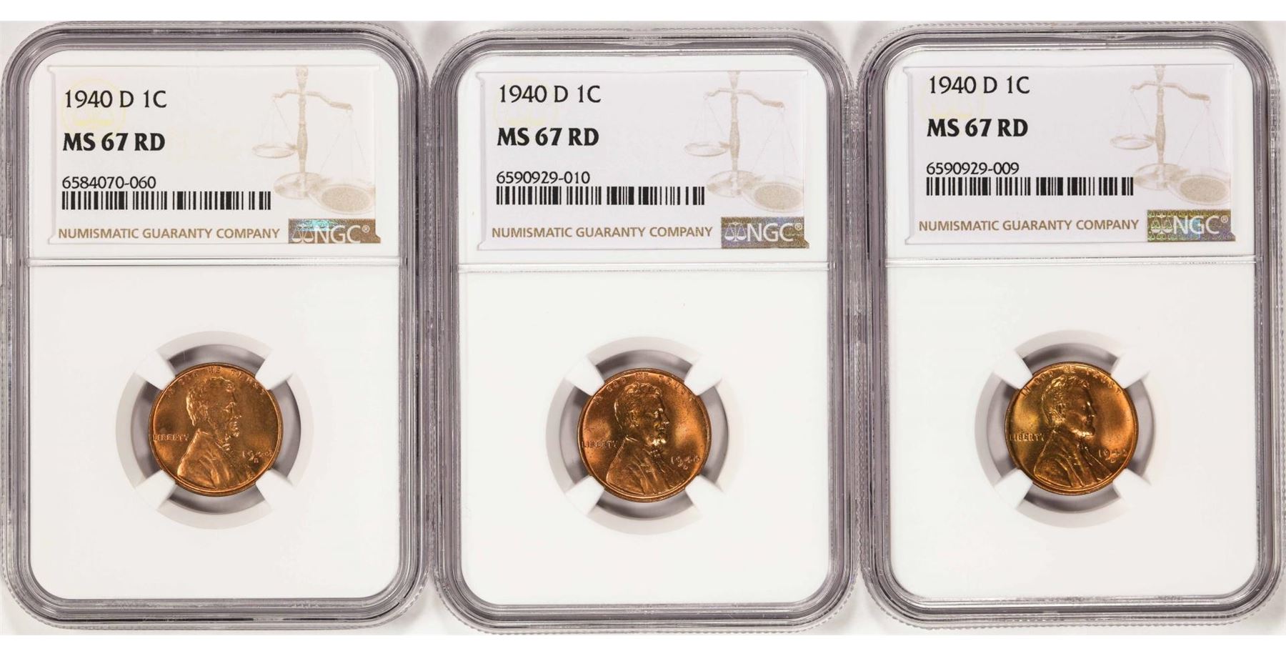 One Lot of (3) 1940-D Lincoln Wheat Cent Coins NGC MS67RD. NGC Certified.