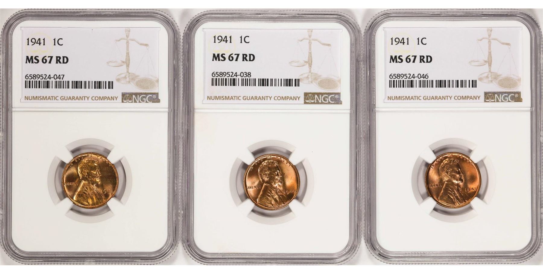 One Lot of (3) 1941 Lincoln Wheat Cent Coins NGC MS67RD. NGC Certified.