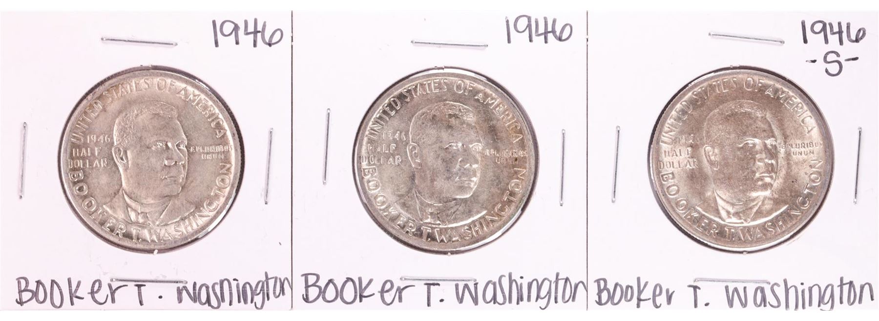 Lot of (3) 1946 & 1946-S Booker T. Washington Commemorative Half Dollar Coins