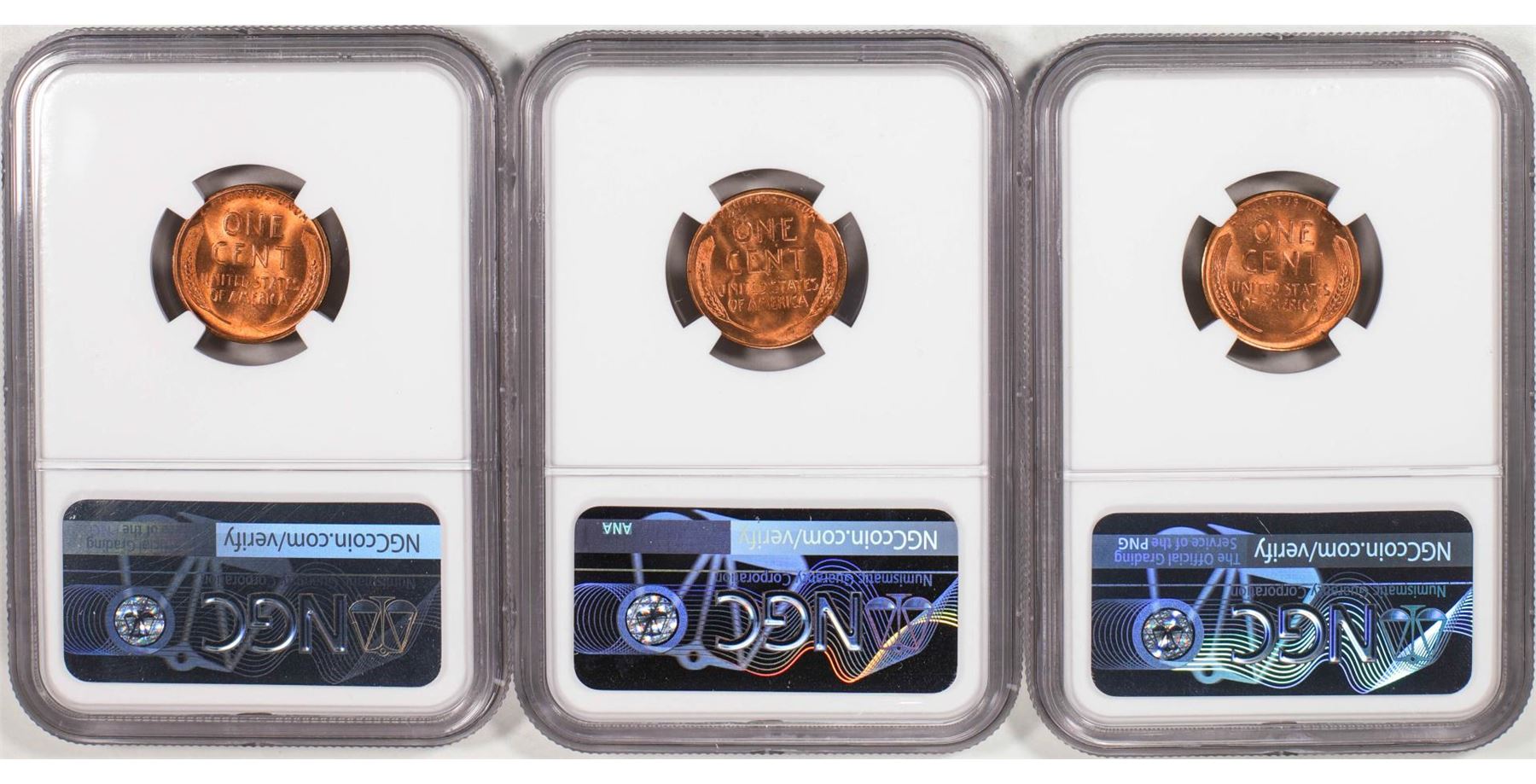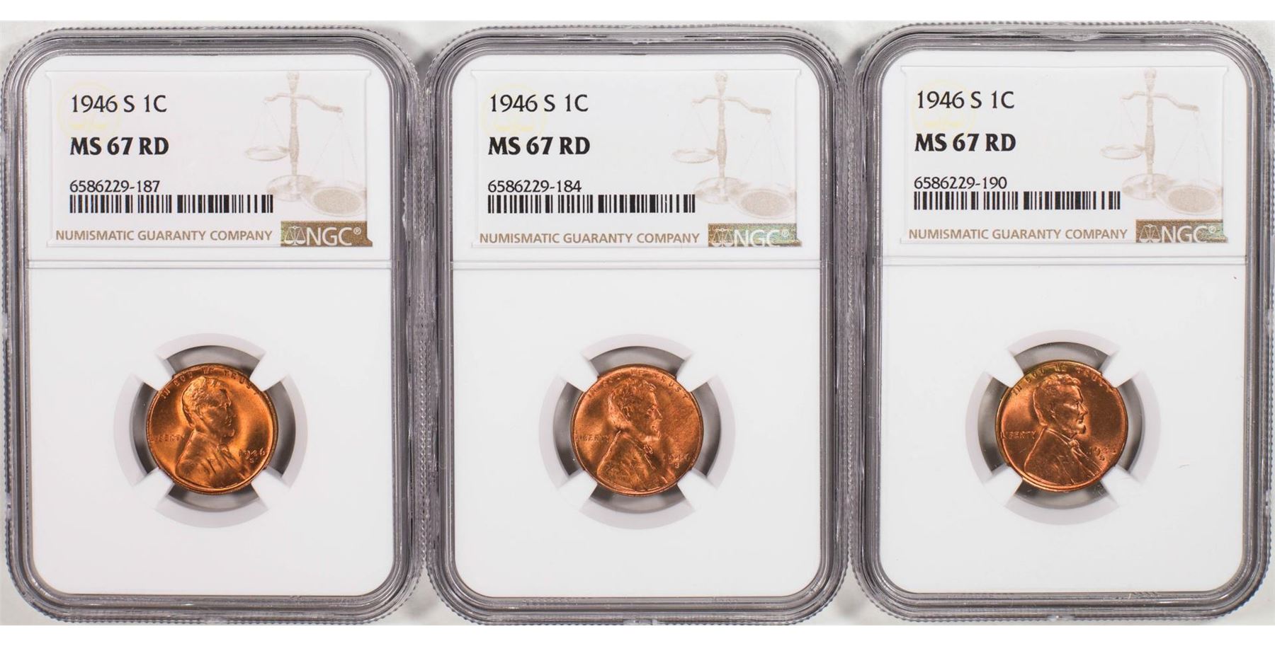 One Lot of (3) 1946-S Lincoln Wheat Cent Coins NGC MS67RD. NGC Certified.