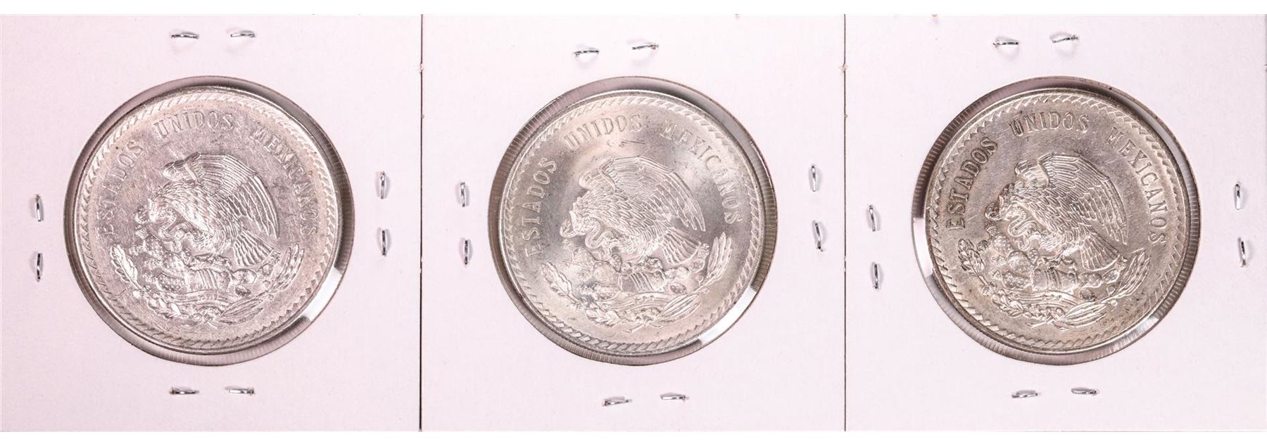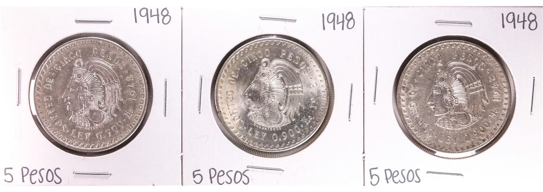 Lot of (3) 1948 Mexico Cuauhtemoc Cinco Pesos Silver Coins