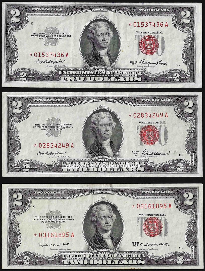 Lot of (3) 1953 $2 Legal Tender STAR Notes