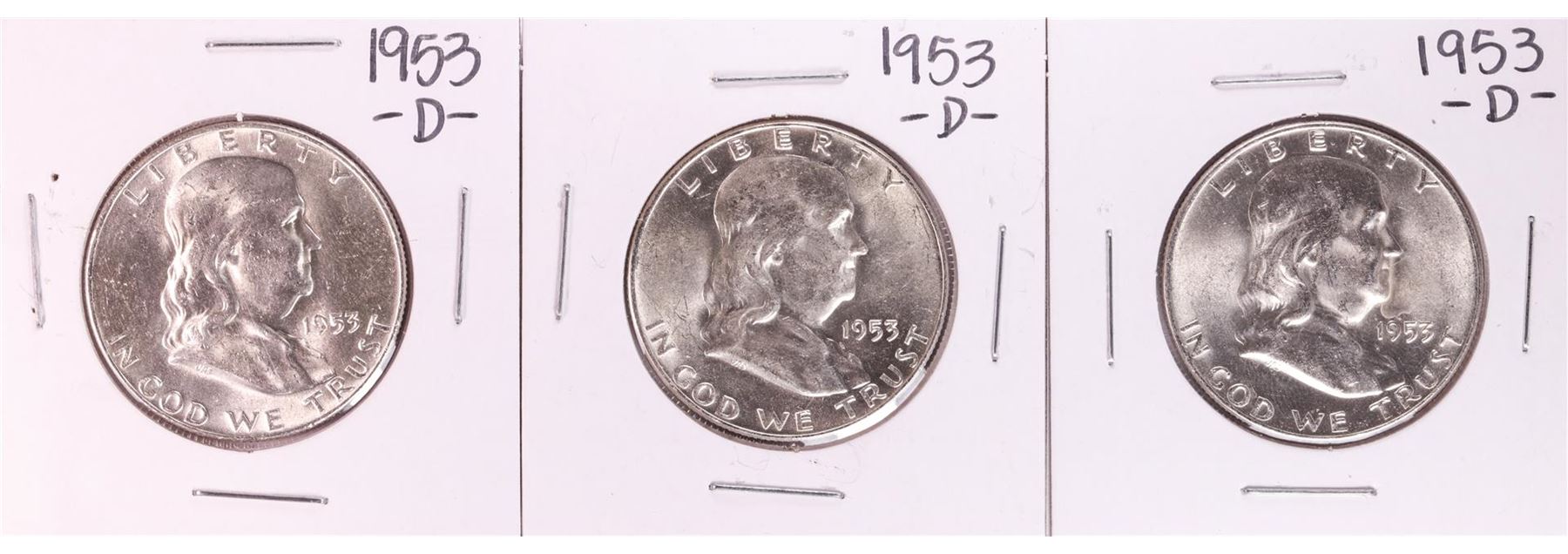 One Lot of (3) 1953-D Franklin Half Dollar Coins.
