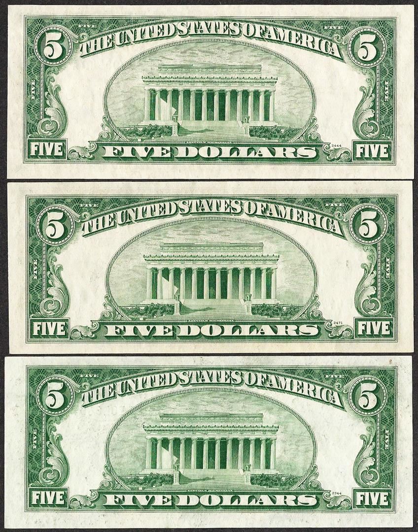 One Lot of (3) 1953A $5 Silver Certificate Notes.