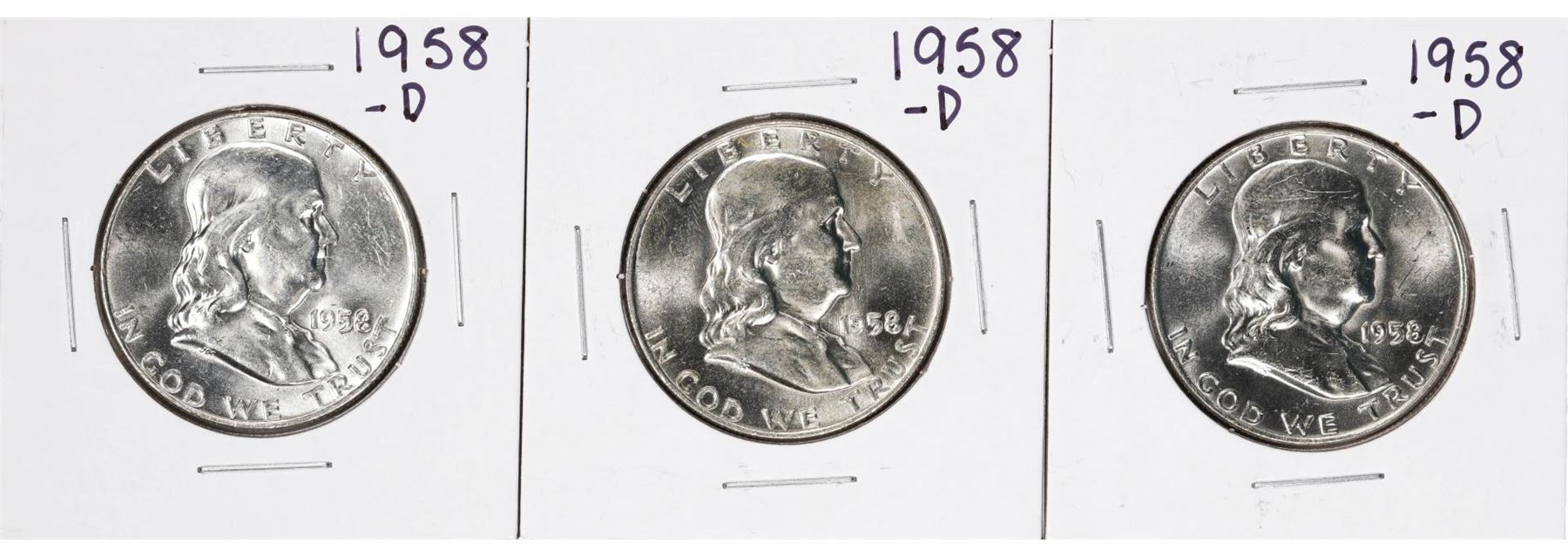One Lot of (3) 1958-D Franklin Half Dollar Coins.