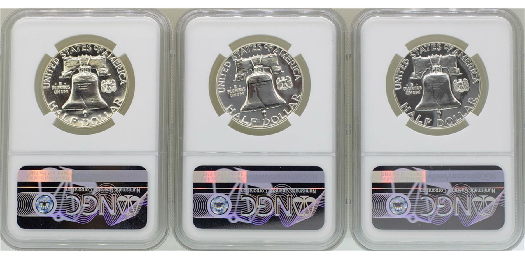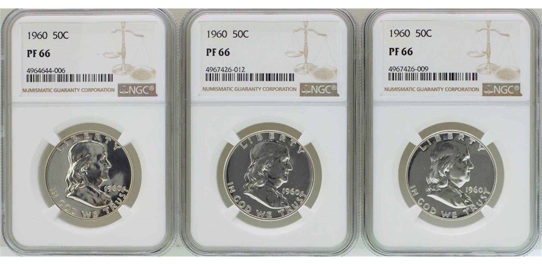 Lot of (3) 1960 Proof Franklin Half Dollar Coins NGC PF66