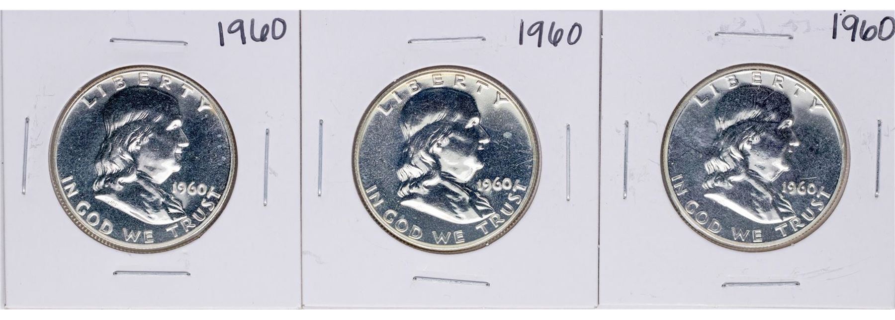One Lot of (3) 1960 Proof Franklin Half Dollar Coins.