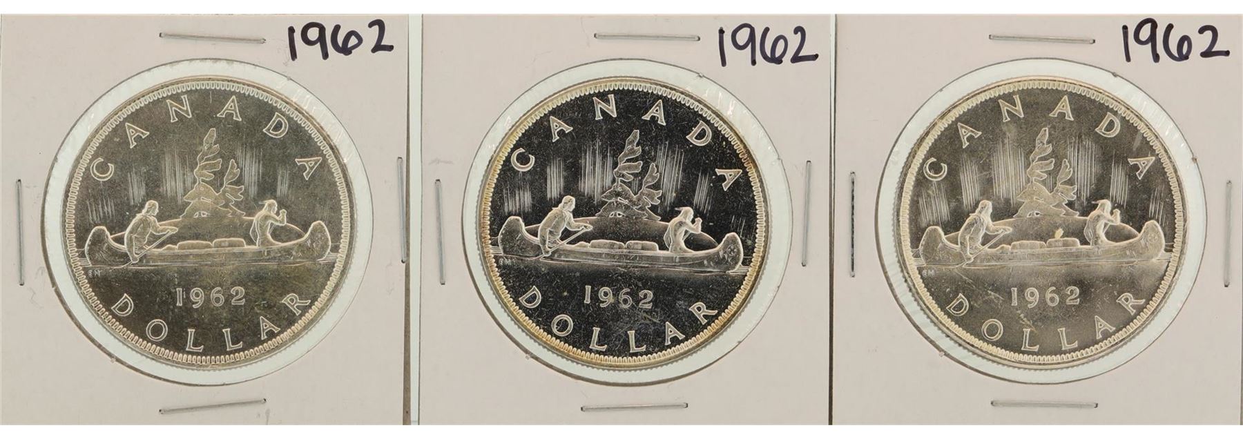 One Lot of (3) 1962 $1 Canada Silver Dollar Coins.