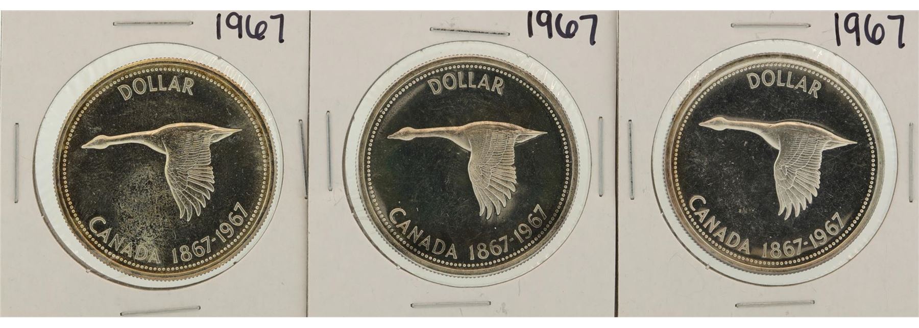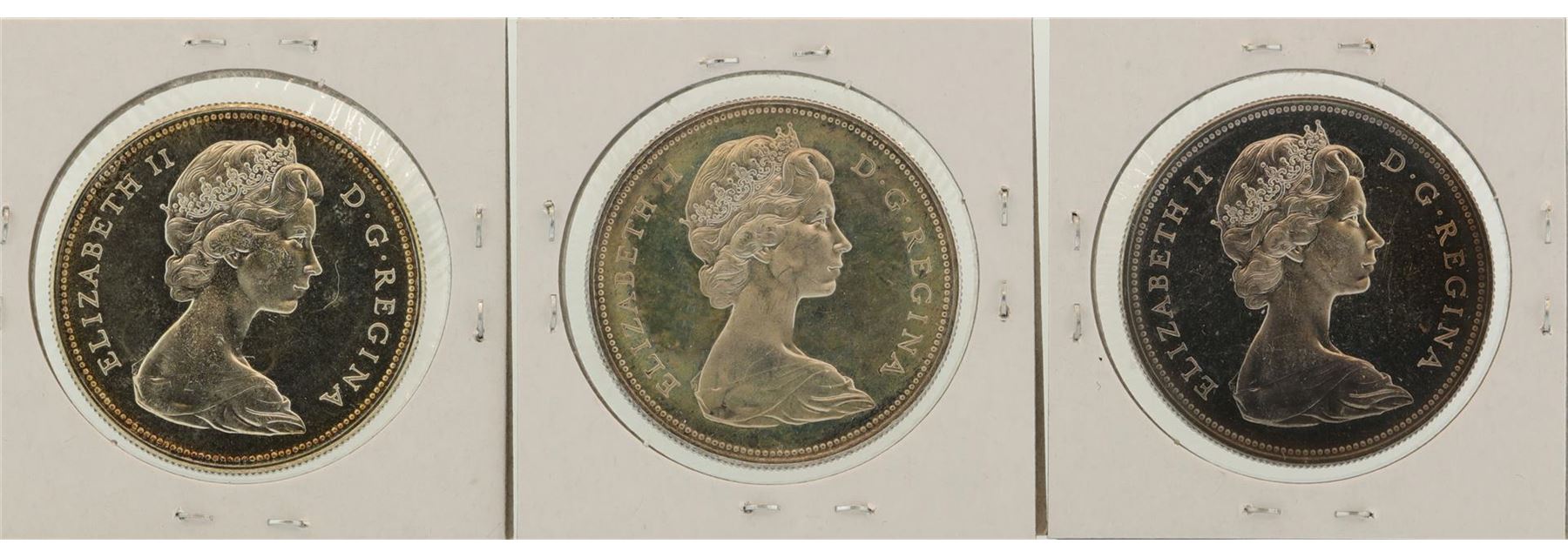 One Lot of (3) 1967 $1 Canada Silver Dollar Coins.