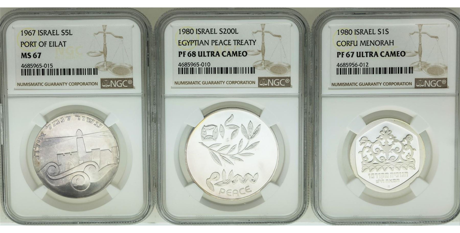 Lot of (3) 1967/1980 Israel Commemorative Silver Coins NGC MS67/PF67/PF68 Ultra