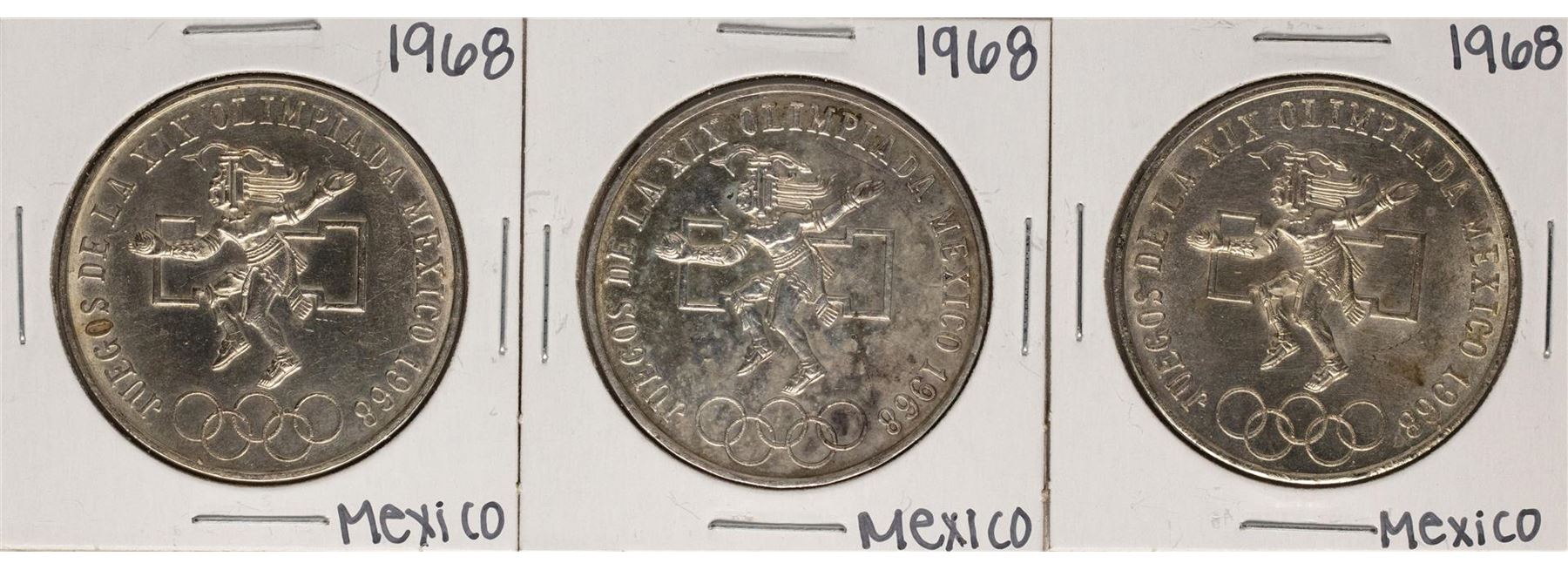 Lot of (3) 1968 Mexico 25 Pesos Olympics Commemorative Coins
