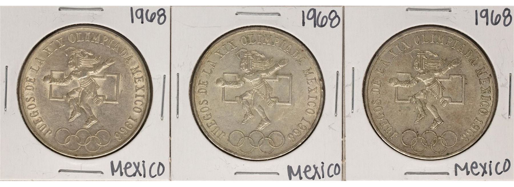 Lot of (3) 1968 Mexico 25 Pesos Olympics Commemorative Coins
