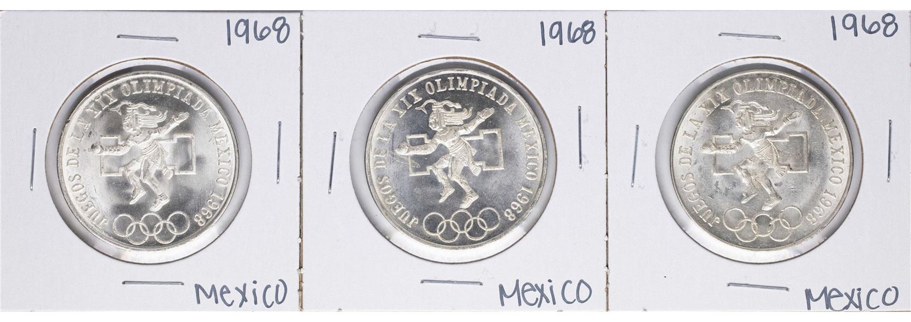 Lot of (3) 1968 Mexico 25 Pesos Silver Olympics Commemorative Coins