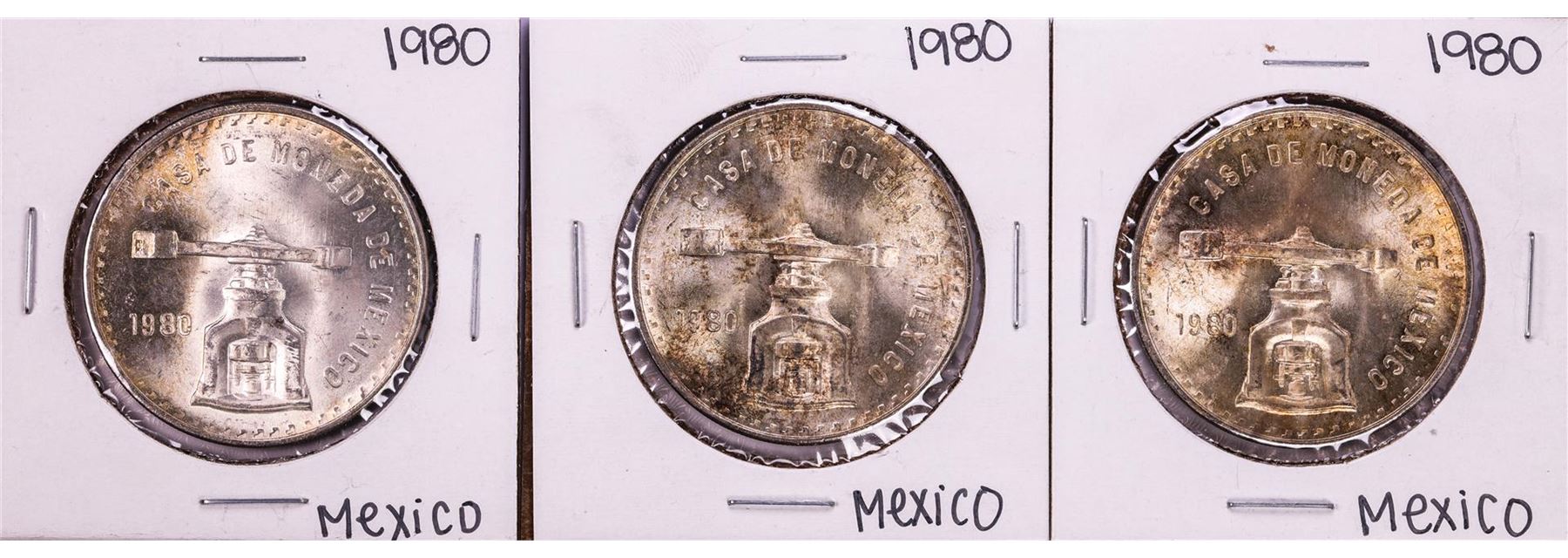 One Lot of (3) 1980 Mexico Onza Silver Coins.