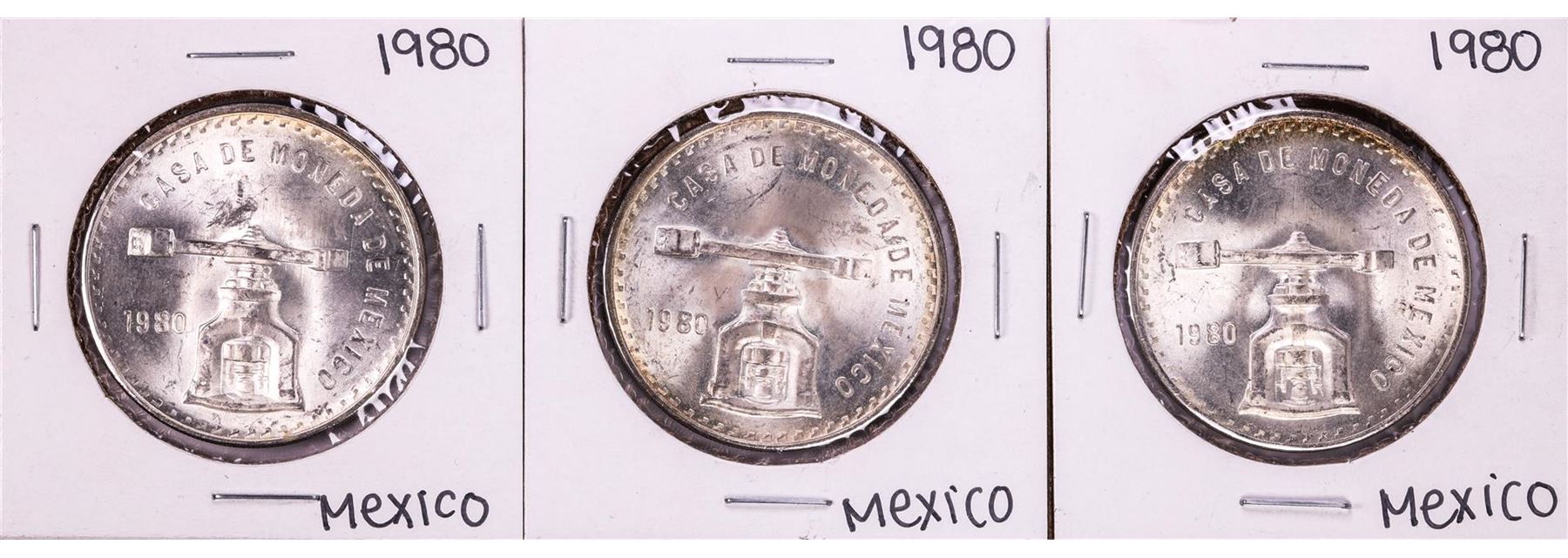 One Lot of (3) 1980 Mexico Onza Silver Coins.