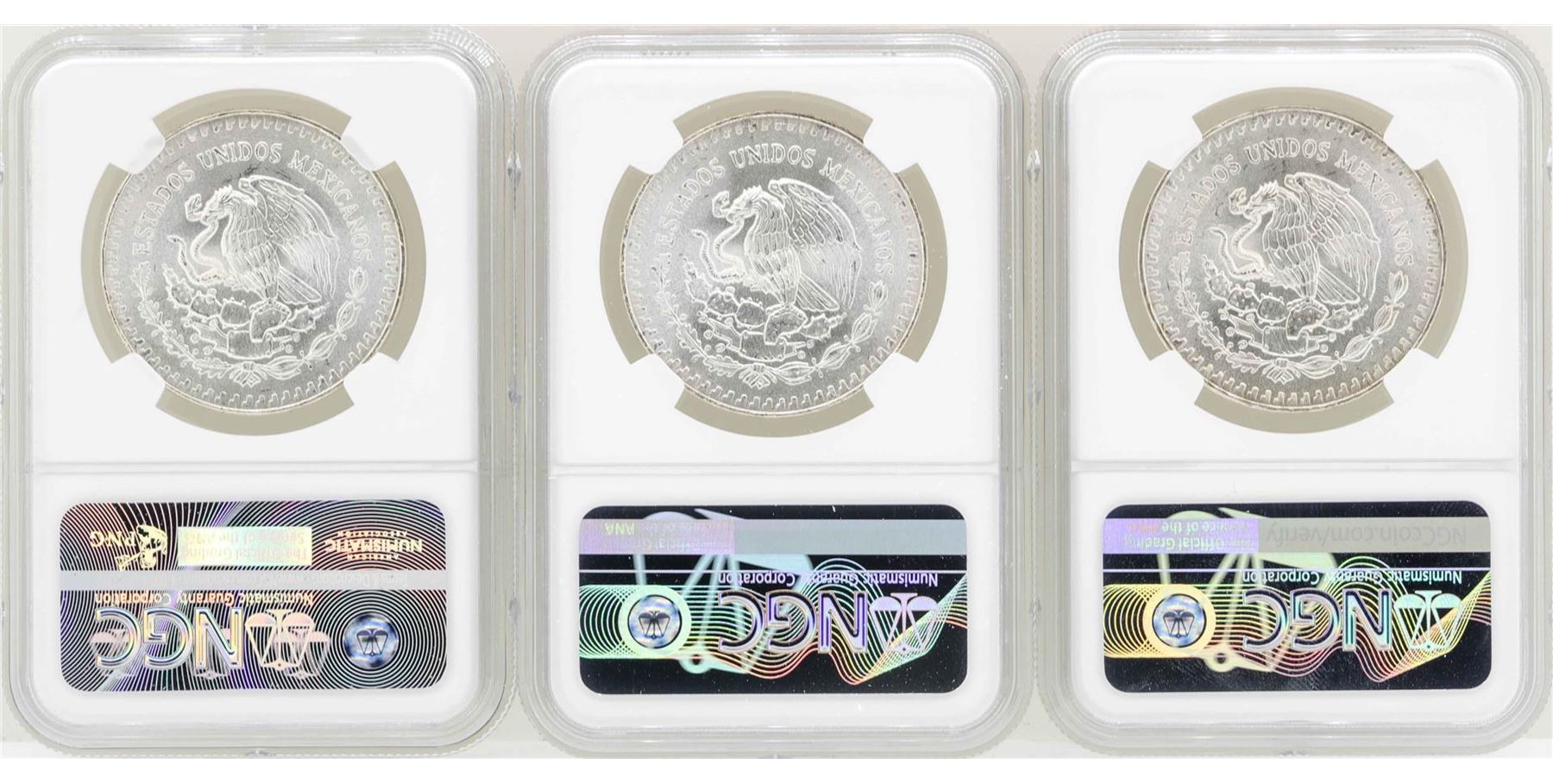 One Lot of (3) 1985Mo 1 Onza Silver Libertad Coins NGC MS66. NGC Certified.