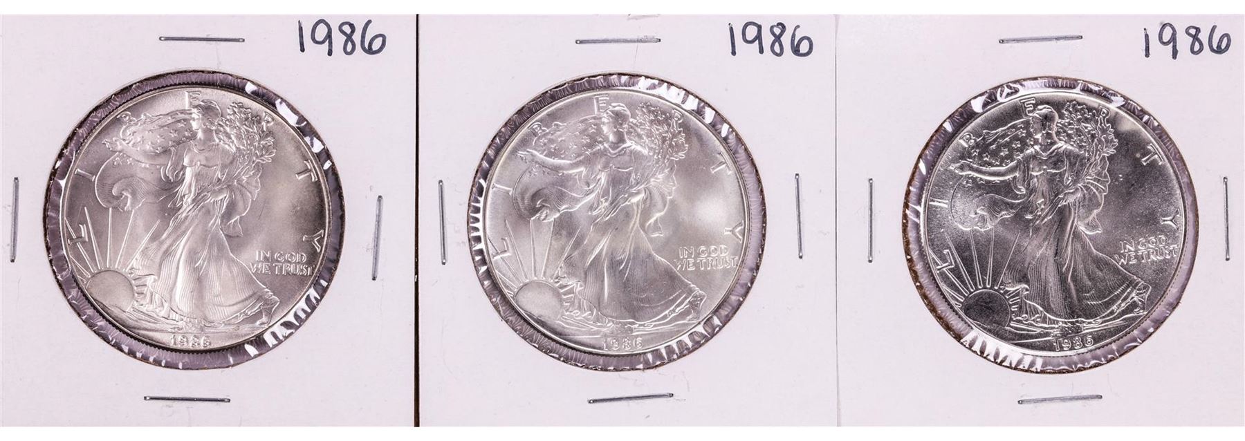 One Lot of (3) 1986 $1 American Silver Eagle Coins.