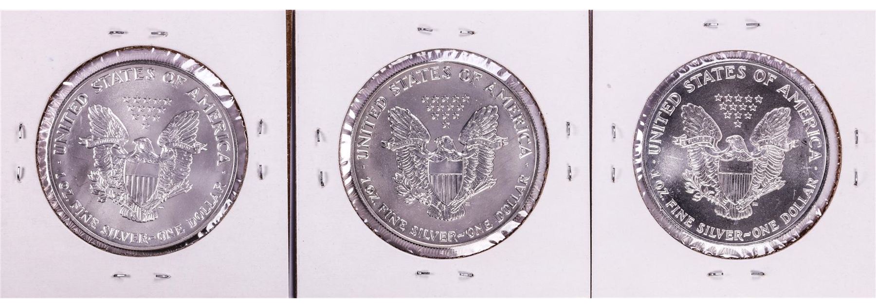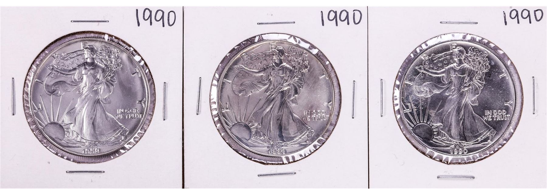 One Lot of (3) 1990 $1 American Silver Eagle Coins.