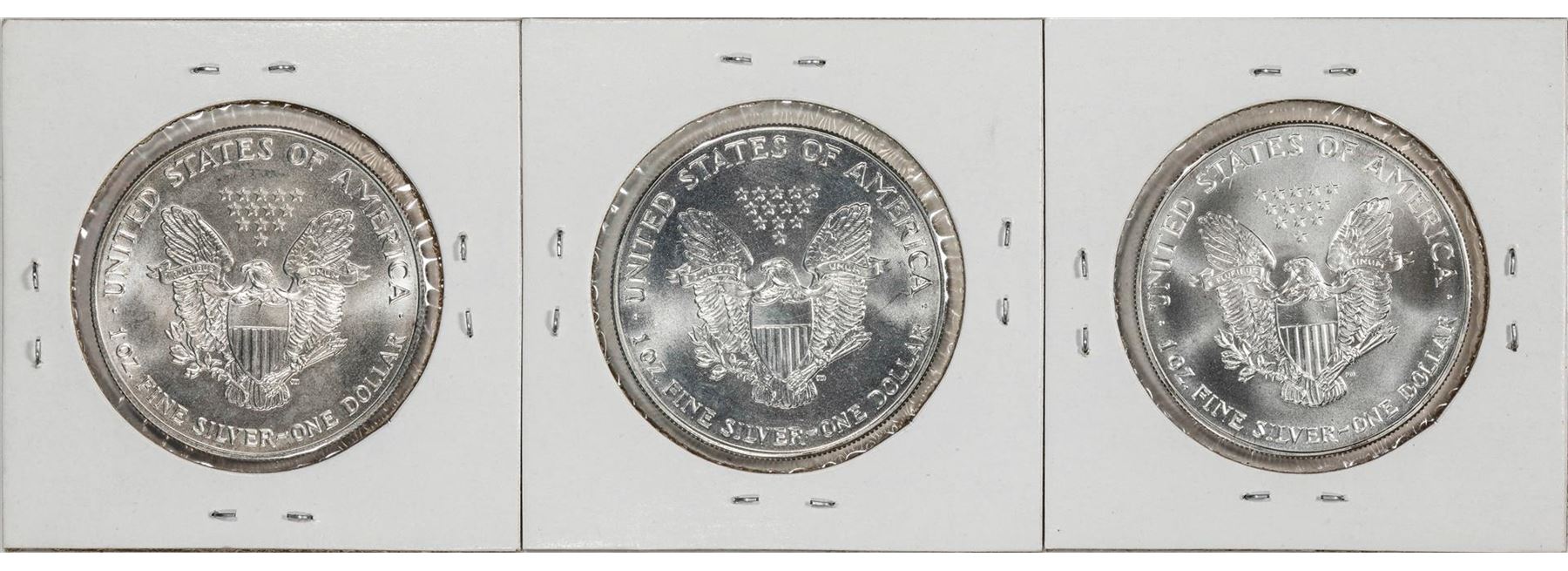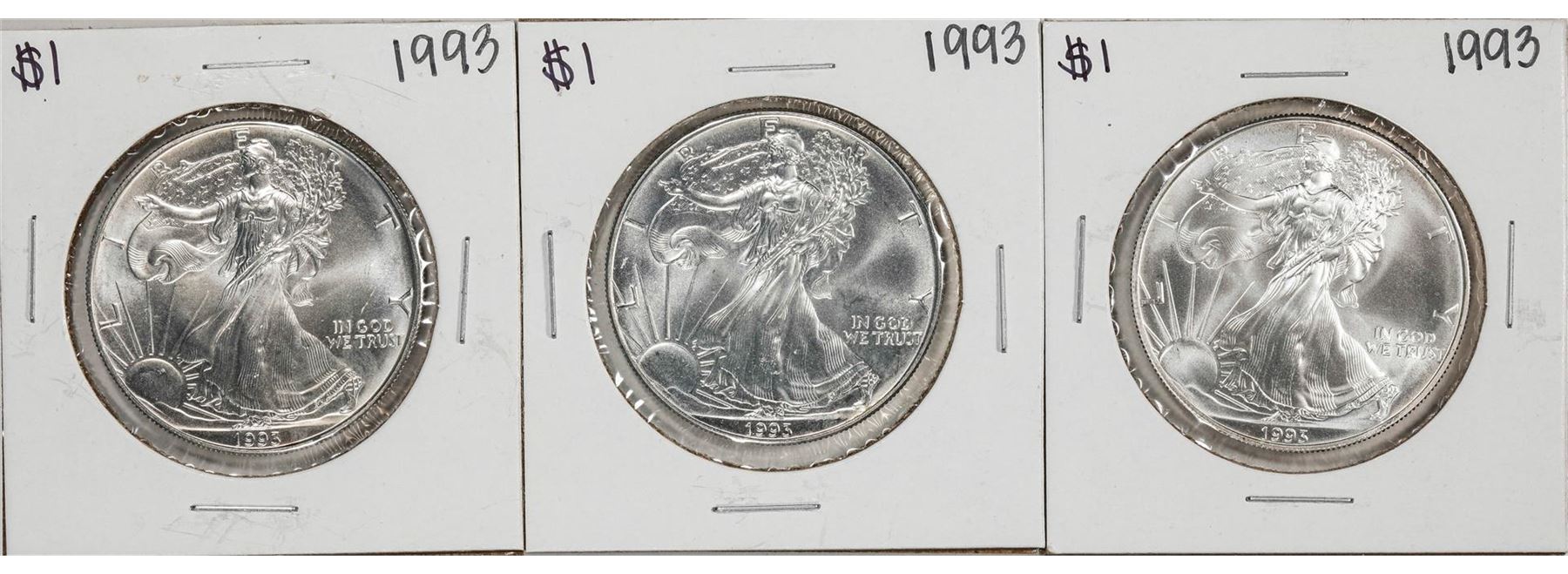 One Lot of (3) 1993 $1 American Silver Eagle Coin.