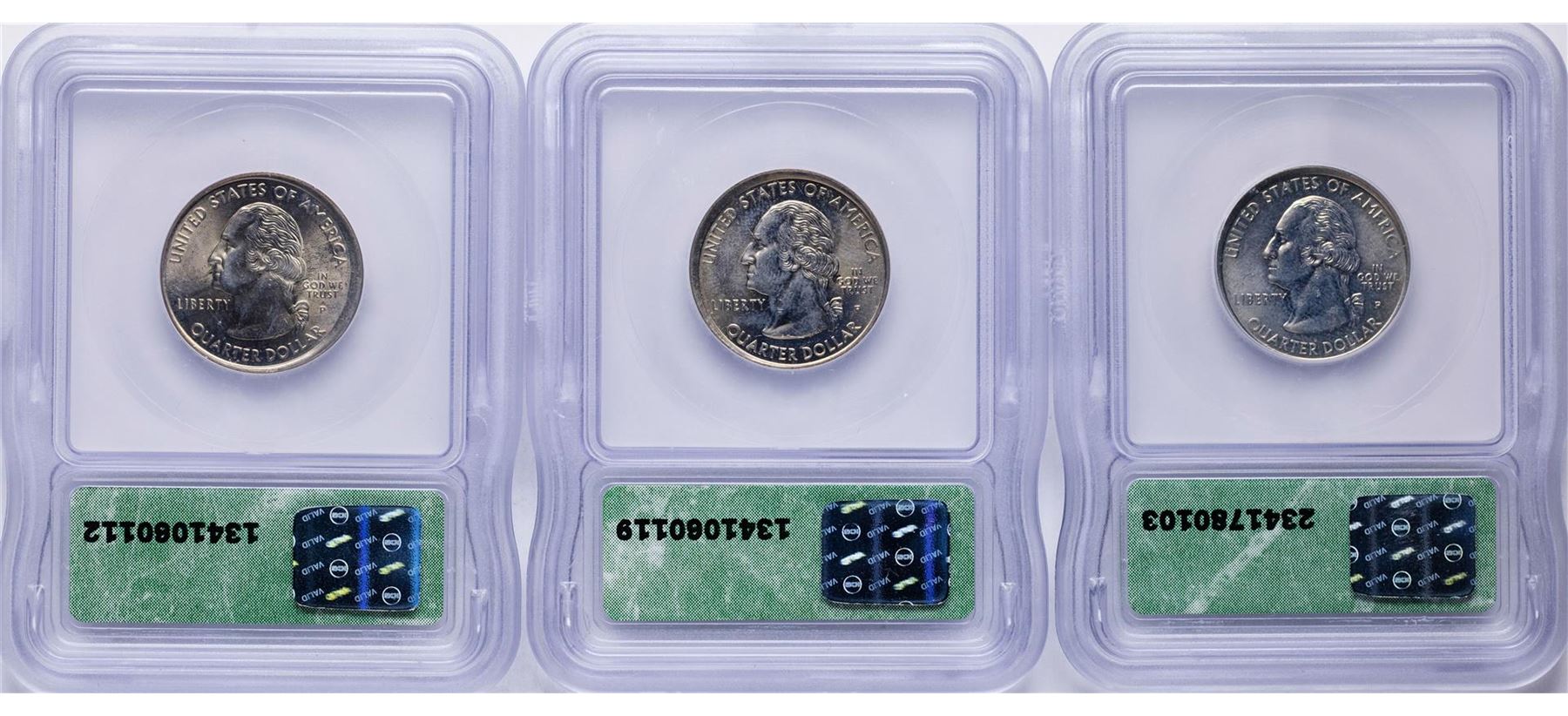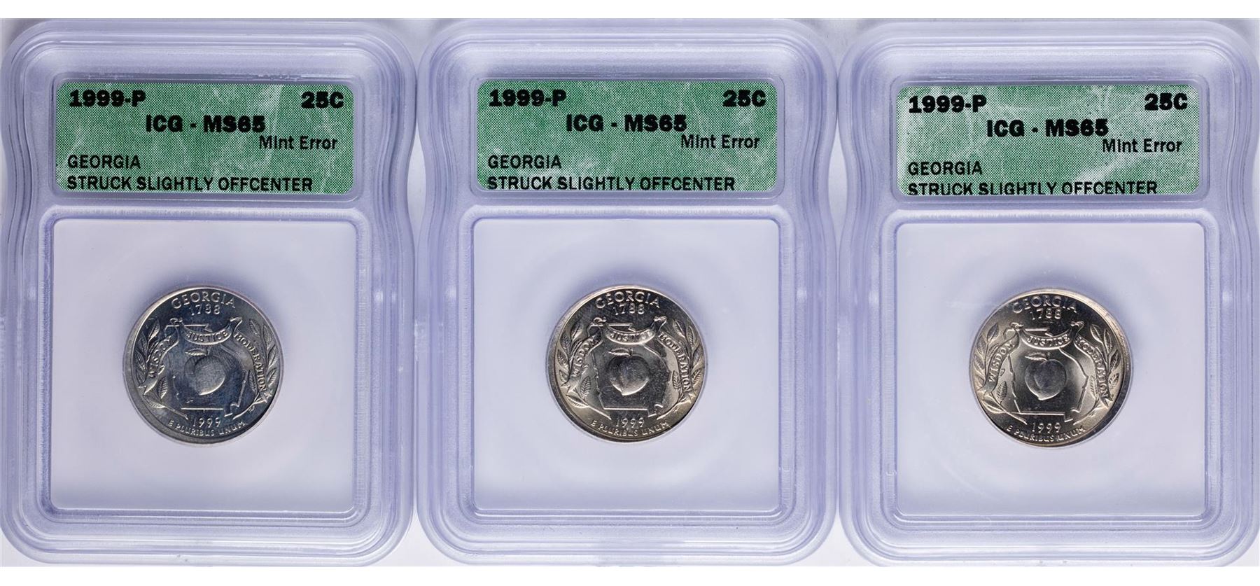 Lot of (3) 1999-P Georgia State Quarter Coins ICG MS65 Struck Slightly Offcenter