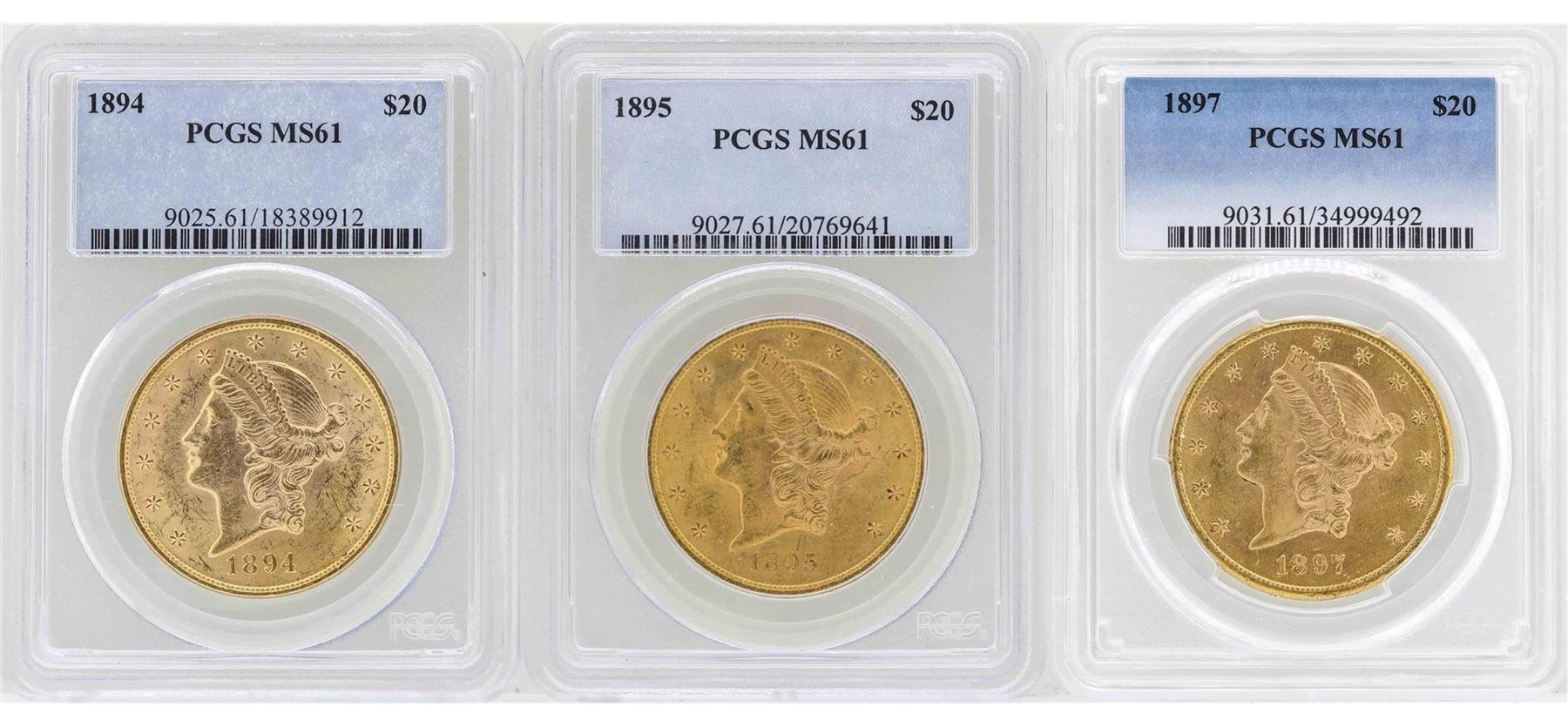 One Lot of (3) $20 Liberty Head Double Eagle Gold Coins PCGS MS61. PCGS Graded.