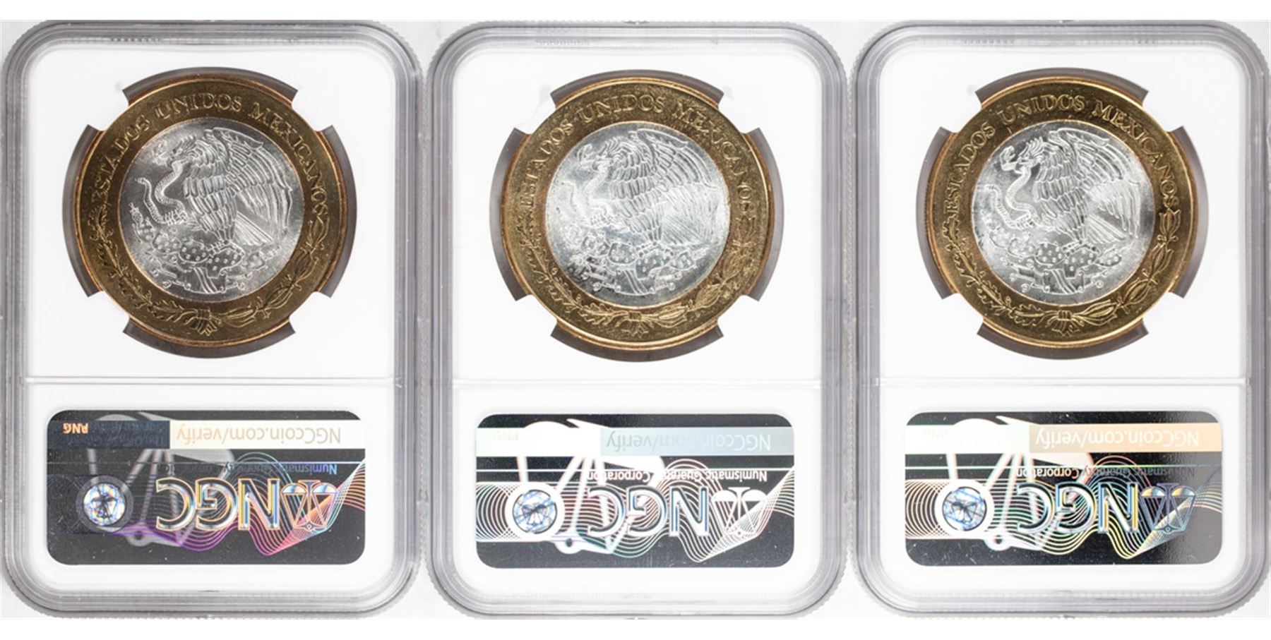 Lot of (3) 2007Mo Mexico 180th Anniversary 100 Pesos Silver Coins NGC MS64