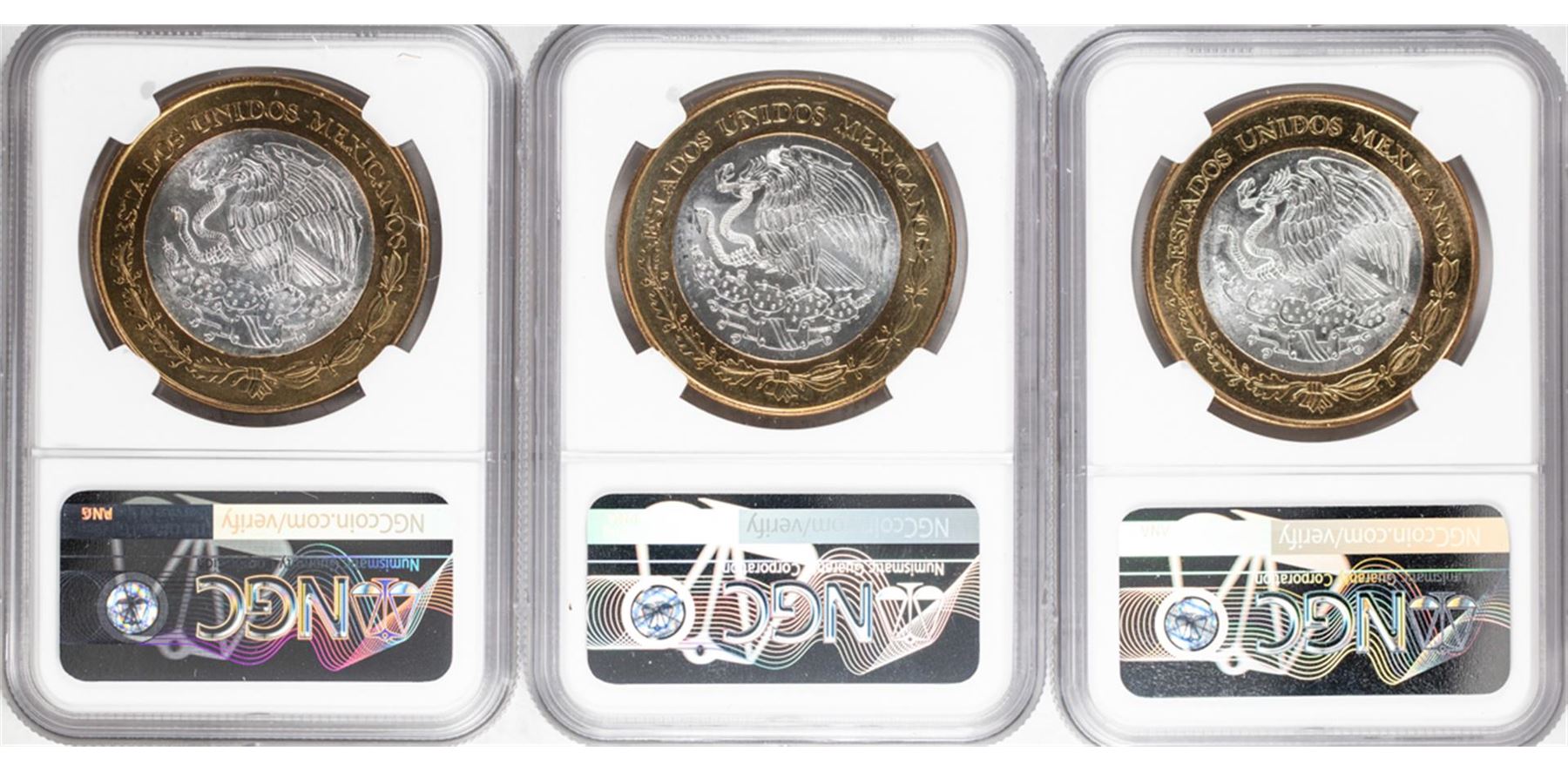 Lot of (3) 2007Mo Mexico 180th Anniversary 100 Pesos Silver Coins NGC MS64