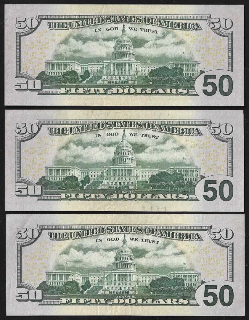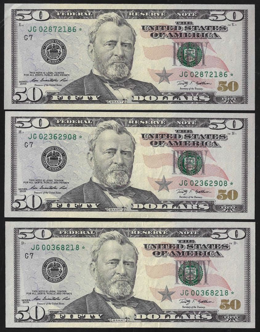 Lot of (3) 2009 $50 Federal Reserve Star Notes