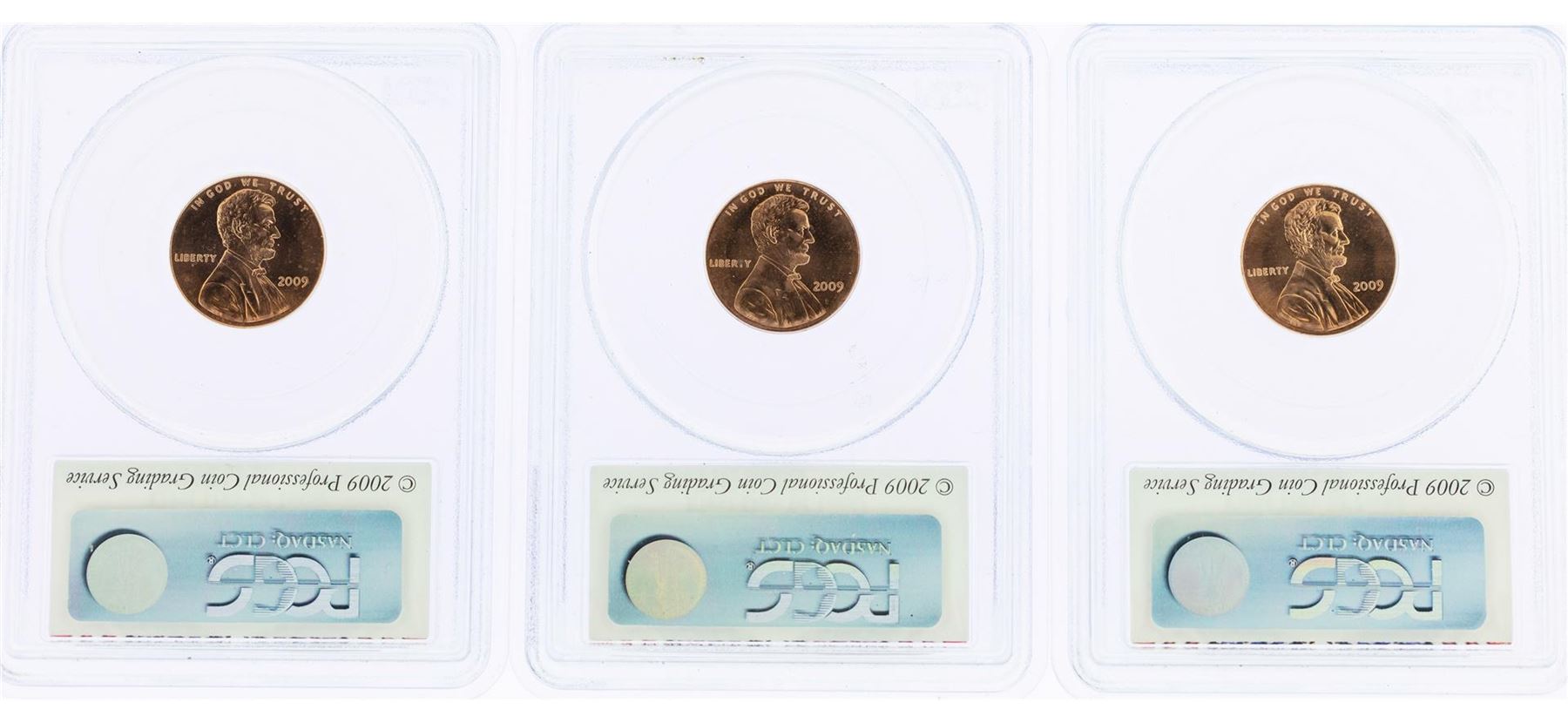 Lot of (3) 2009 Bicentennial Lincoln Cent Coins PCGS MS66RD First Day of Issue