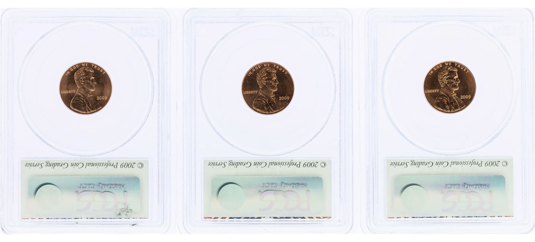 Lot of (3) 2009 Bicentennial Lincoln Cent Coins PCGS MS66RD First Day of Issue
