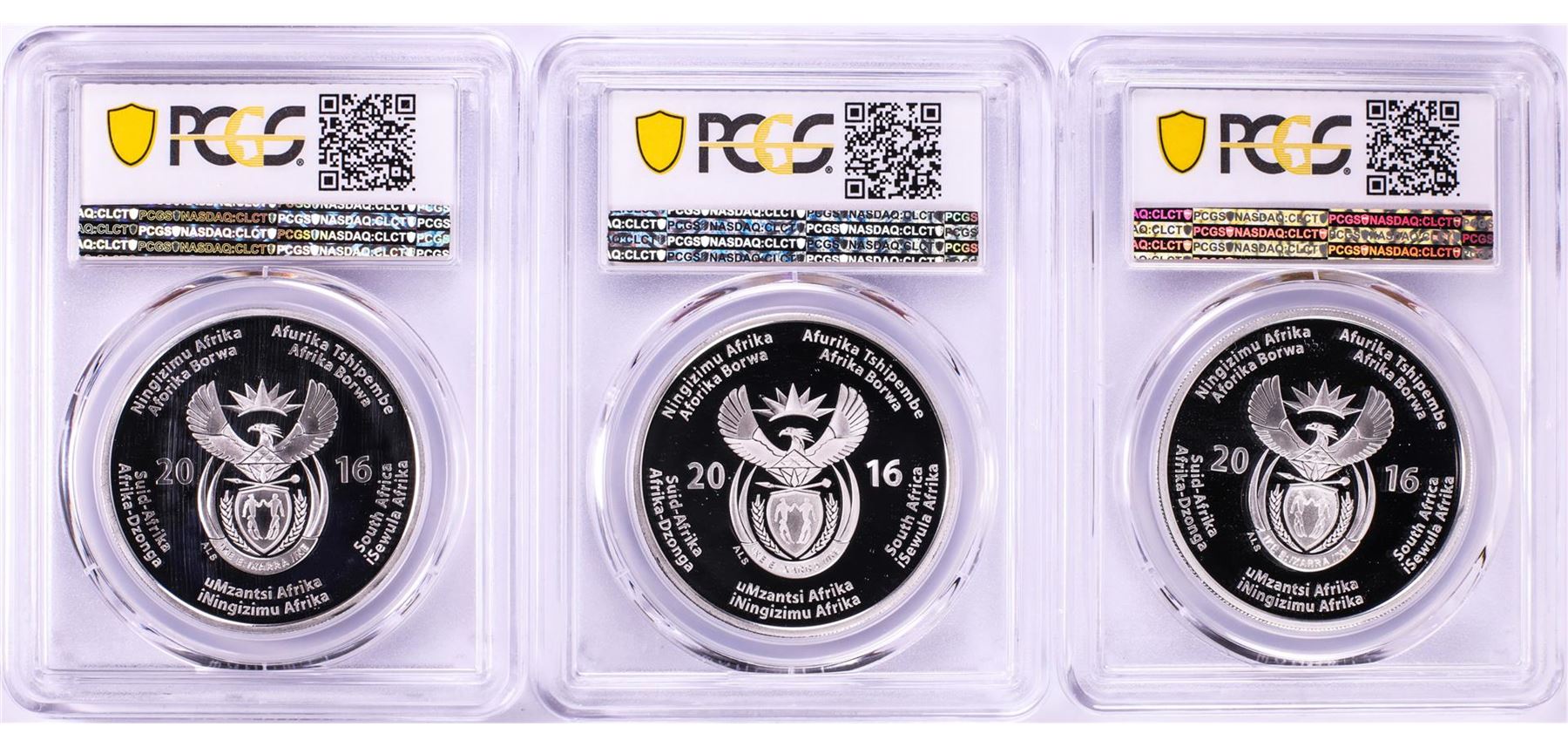 Lot of (3) 2016 Proof South Africa 2 Rand Cheetah Silver Coins PCGS PR70DCAM