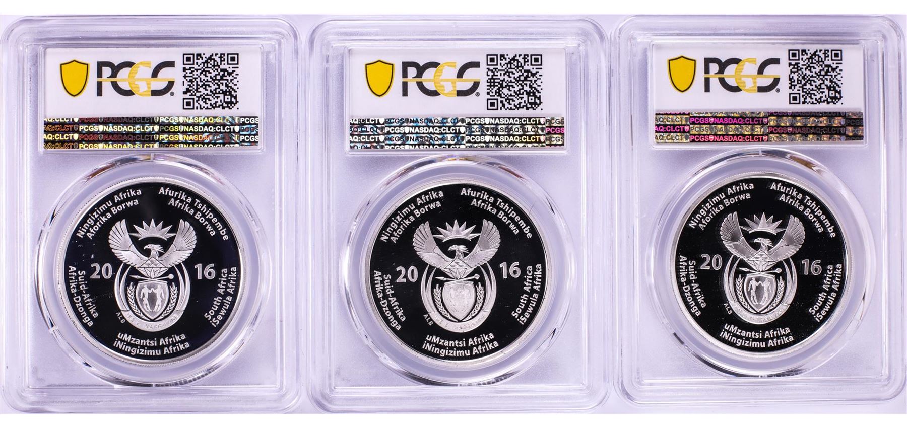 Lot of (3) 2016 Proof South Africa 2 Rand Cheetah Silver Coins PCGS PR70DCAM