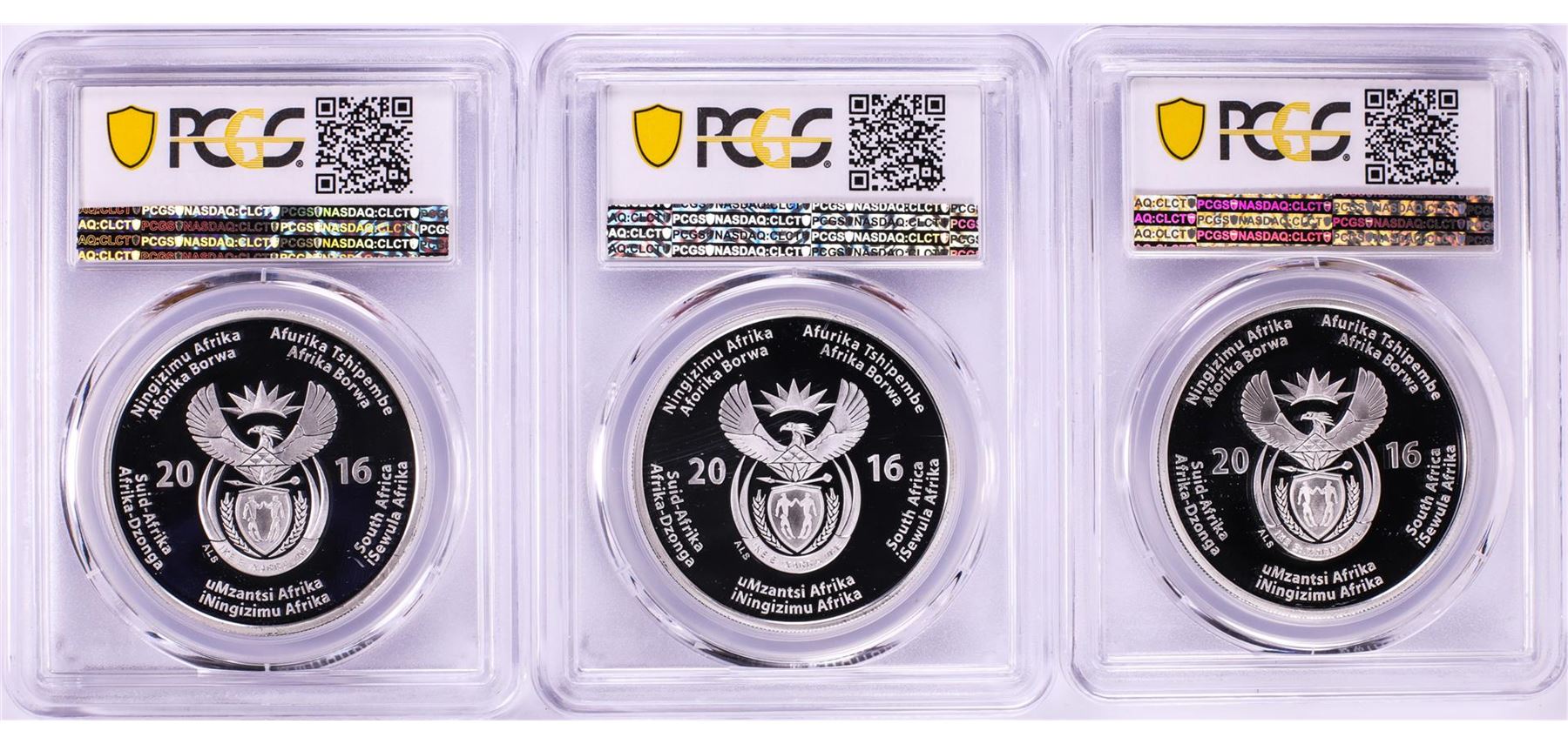 Lot of (3) 2016 Proof South Africa 2 Rand Cheetah Silver Coins PCGS PR70DCAM