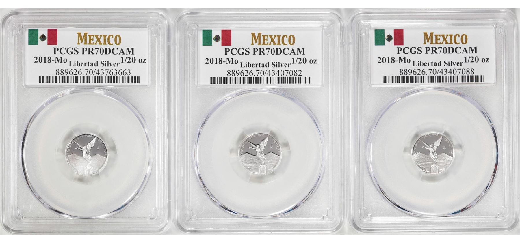 Lot of (3) 2018-Mo Mexico Proof 1/20 oz Silver Libertad Coins PCGS PR70DCAM