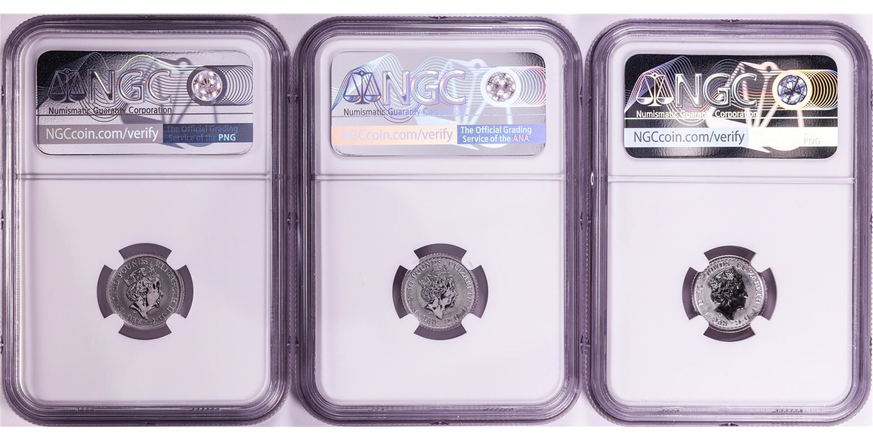 Lot of (3) 2021 Great Britain 10 Pounds Britannia 1/10oz Platinum Coins NGC MS69