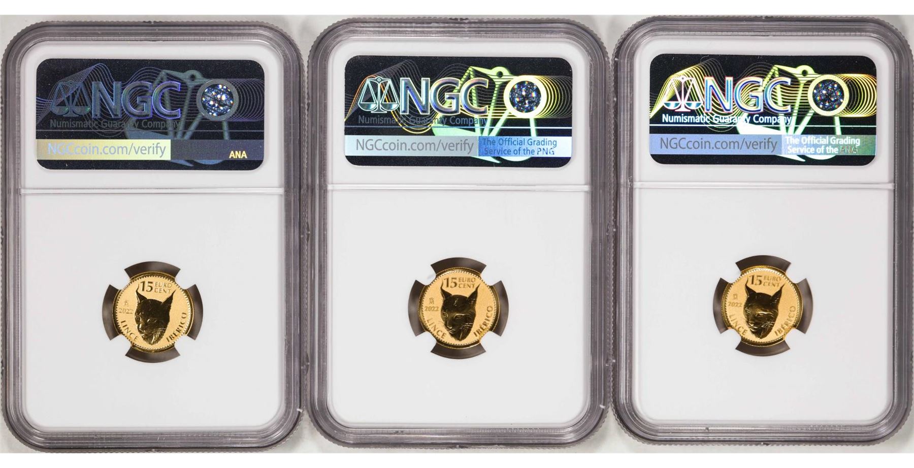 Lot of (3) 2022M Spain 15 Euro Cent Lynx Gold Doubloon Coins NGC MS69 FDOI