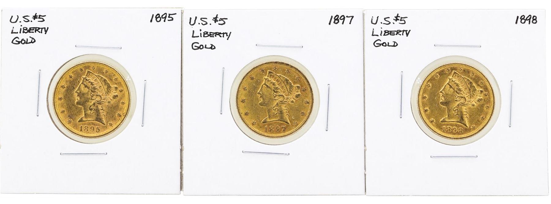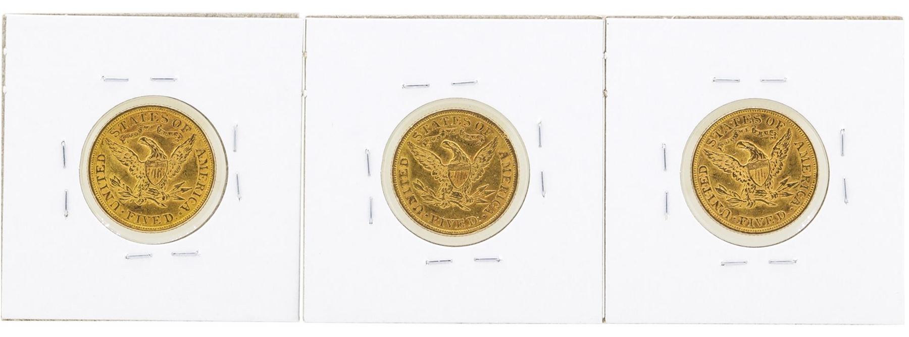 One Lot of (3) $5 Liberty Head Half Eagle Gold Coins.