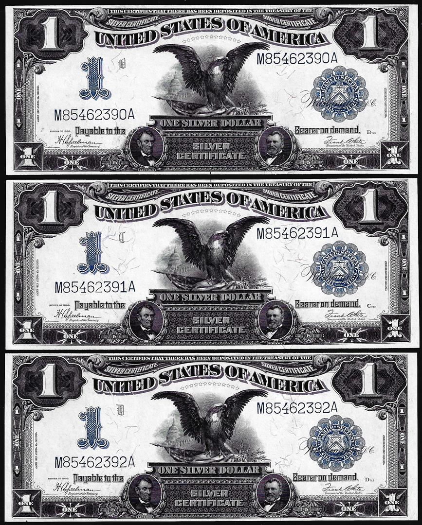 One Lot of (3) Consecutive 1899 $1 Black Eagle Silver Certificate Notes.