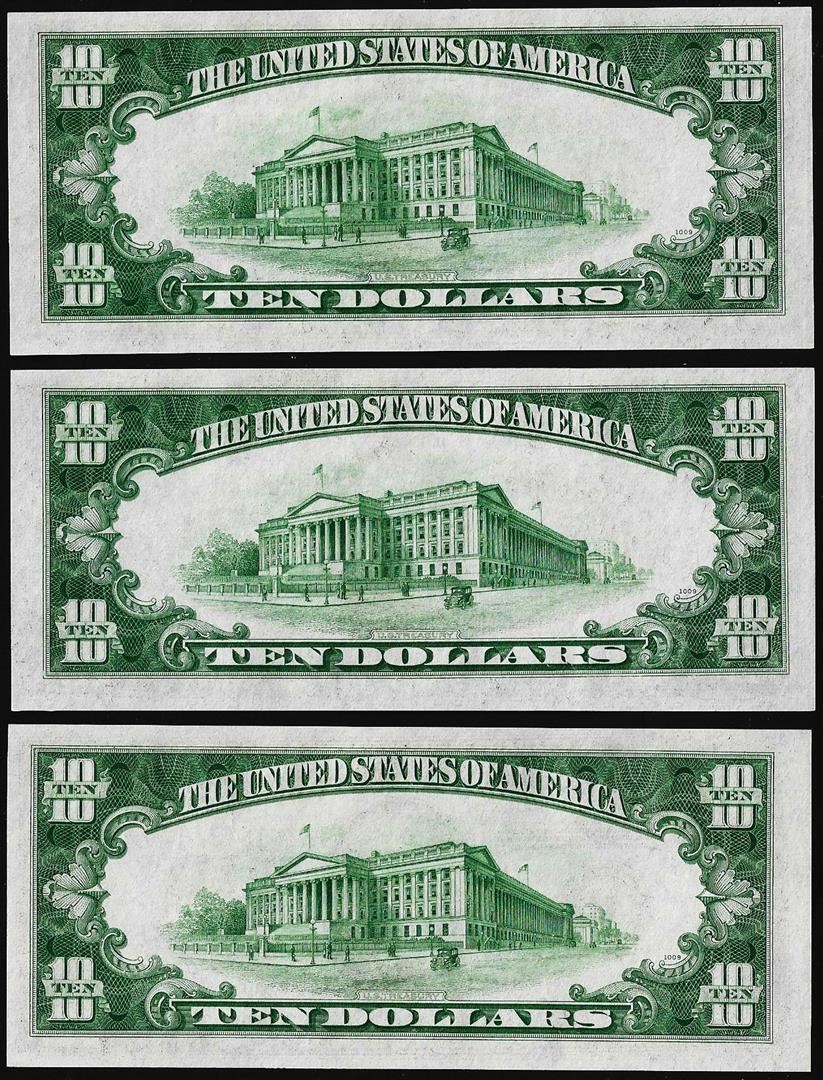 Lot of (3) Consecutive 1934A $10 Federal Reserve Notes St. Louis