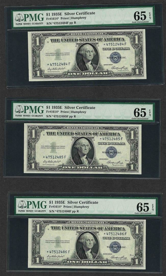 Lot of (3) Consecutive 1935E $1 Silver Certificate STAR Notes PMG Gem Unc. 65EPQ