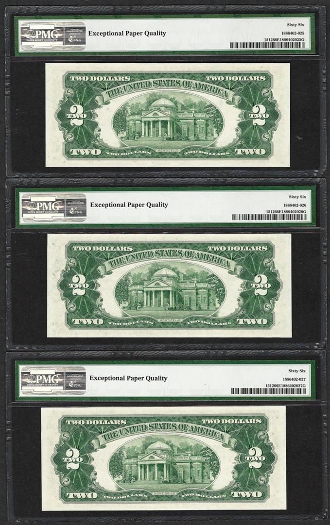 One Lot of (3) Consecutive 1953C $2 Legal Tender Notes Fr.1512 PMG Gem Uncirculated 66EPQ. PMG Certified.
