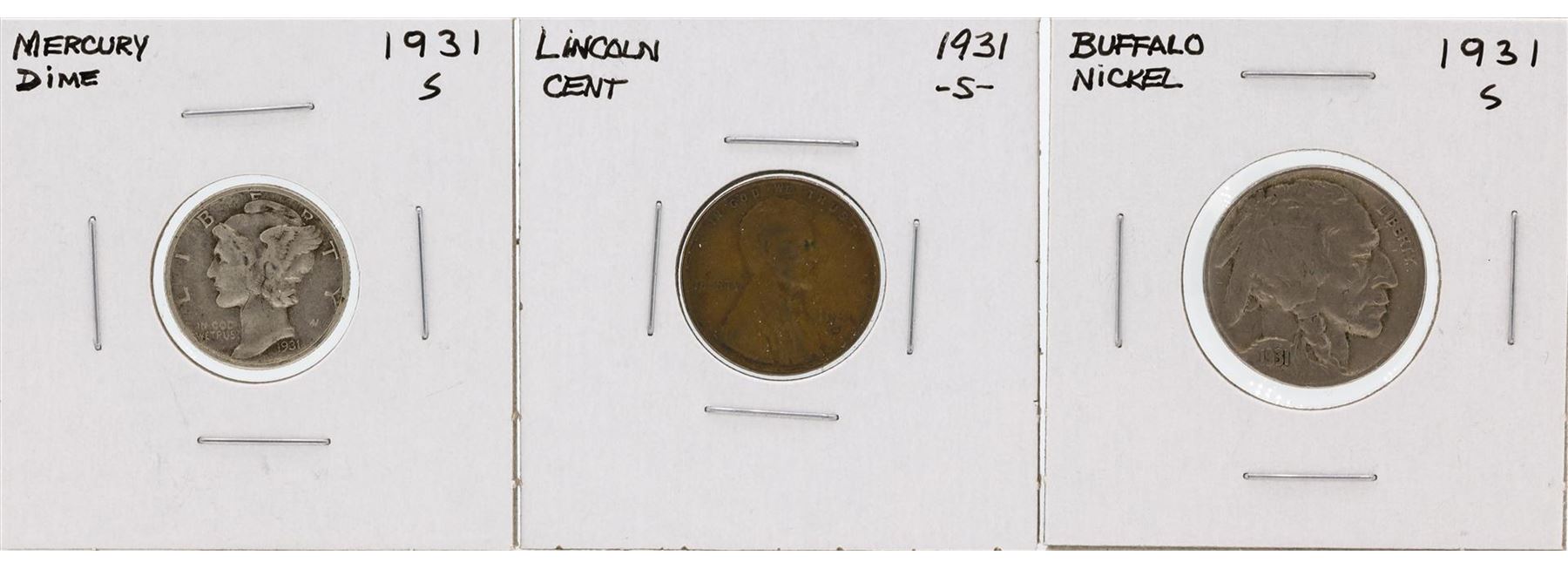 One Lot of (3) Depression Era Lower Mintage Coins.