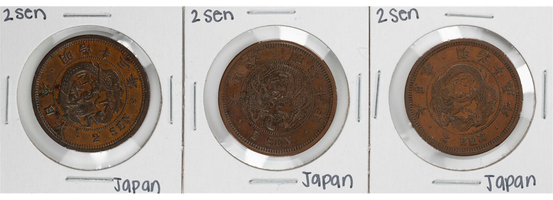 One Lot of (3) Japan 2 Sen Coins.