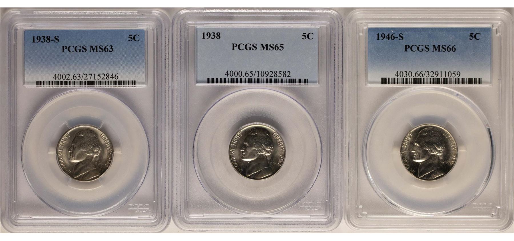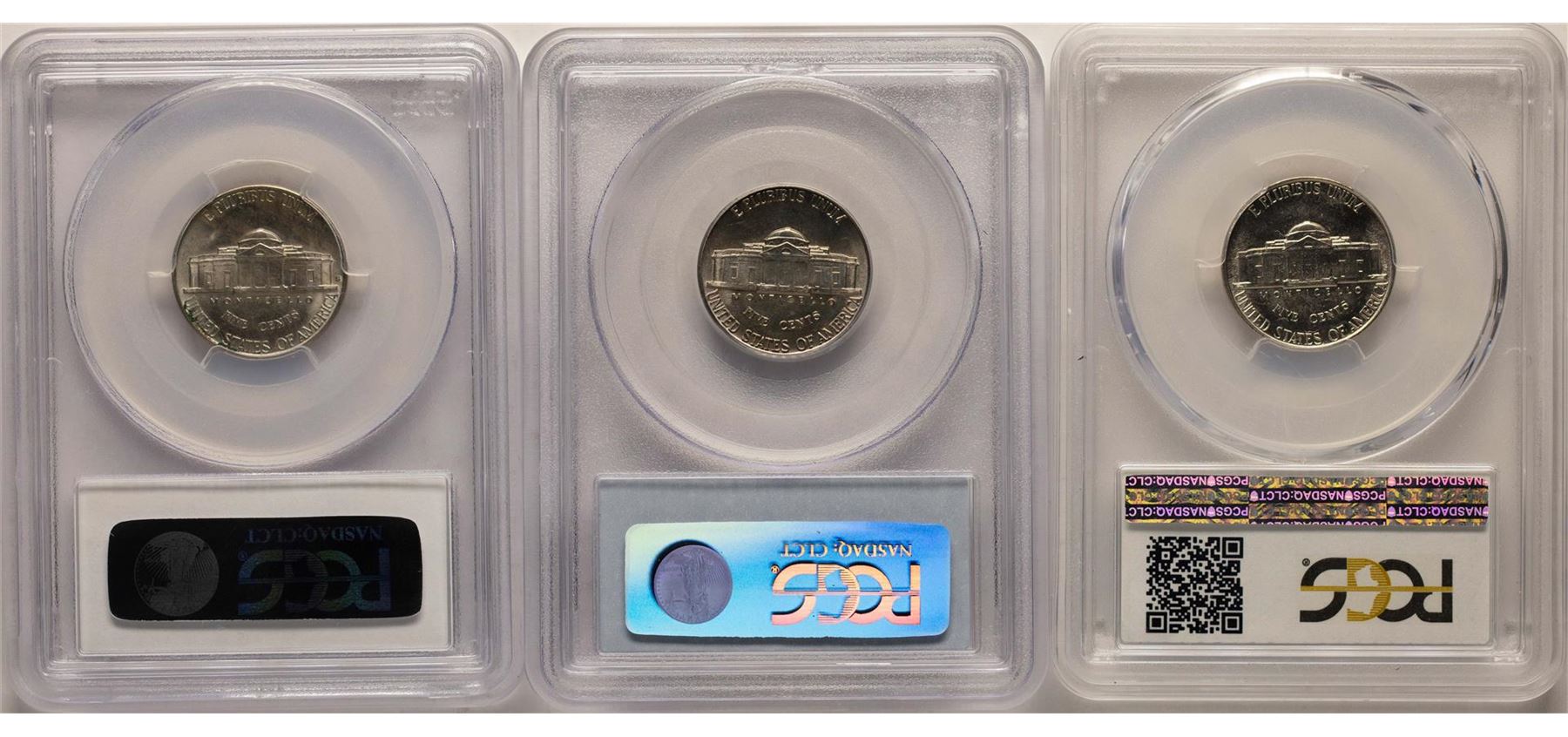 One Lot of (3) Jefferson Nickel Coins PCGS Graded. PCGS Graded.