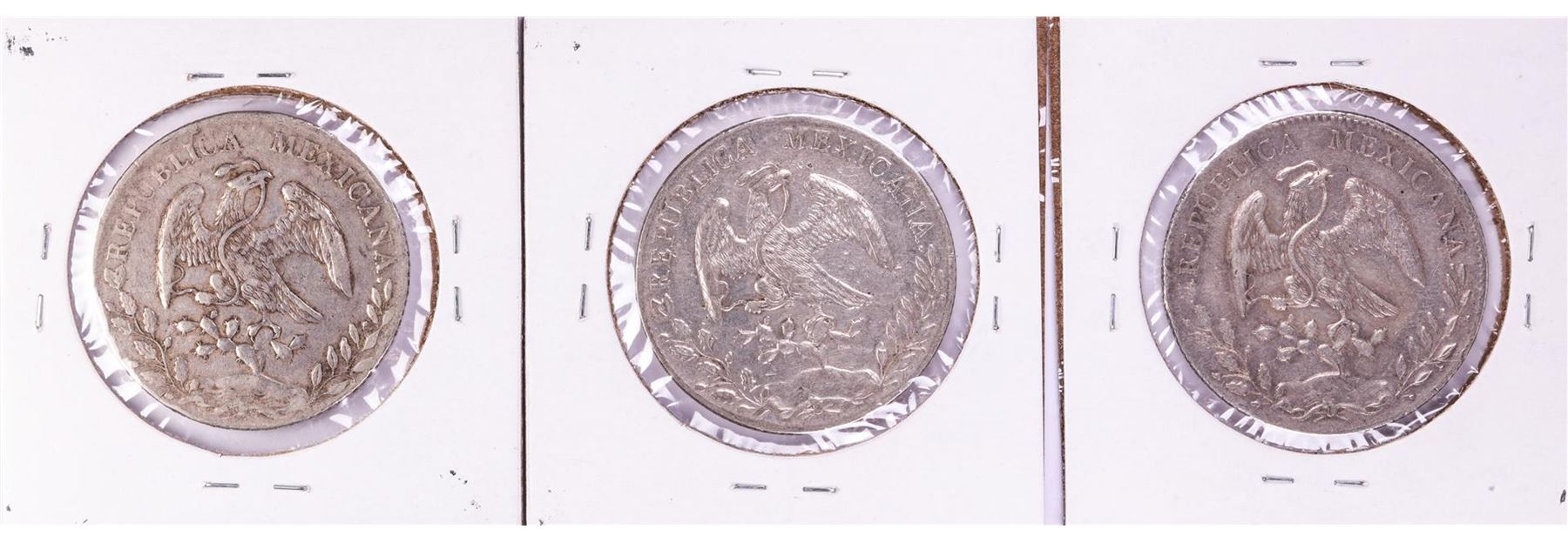One Lot of (3) Mexico 8 Reales Cap & Rays Silver Coins.
