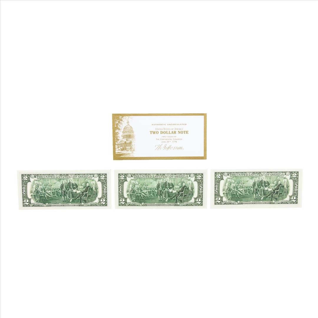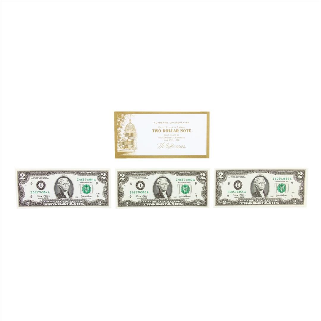 One Lot of (3) Monetary Exchange 2003 $2 Federal Reserve Notes.